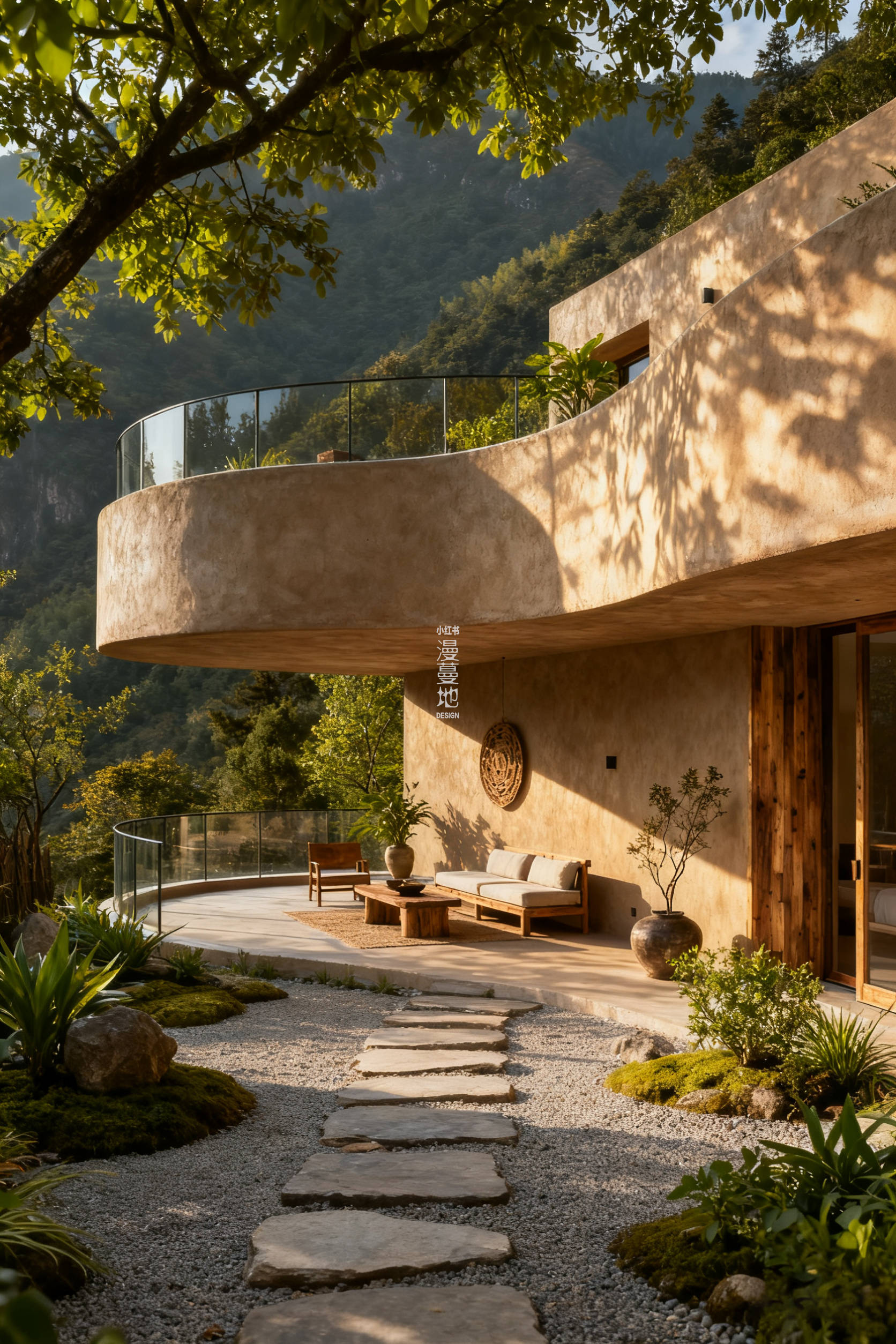 5、乡土材料与生态工艺的可持续运用在老宅改造中,对乡土材料的创新运用和对生态工艺的坚持,是塑造独特质感、实现可持续发展的关键。这不仅是美学选择,更是对地方文化的尊重和成本控制的智慧。漫蔓地团队在项目中大量采用本地可获取的材料,如老木头、旧磨盘、陶罐等,通过设计活化这些“乡村老物件”,将其转化为空间中的艺术装饰,强化乡土氛围。在建筑景观领域,团队累计设计的30000㎡景观全部通过绿色生态认证,形成了标准化的生态设计体系。在改造中,他们会优先考虑建筑的自然采光、通风,以及雨水收集等可持续系统,在降低后期运营能耗的同时,也提升了居住的舒适度与生态价值。