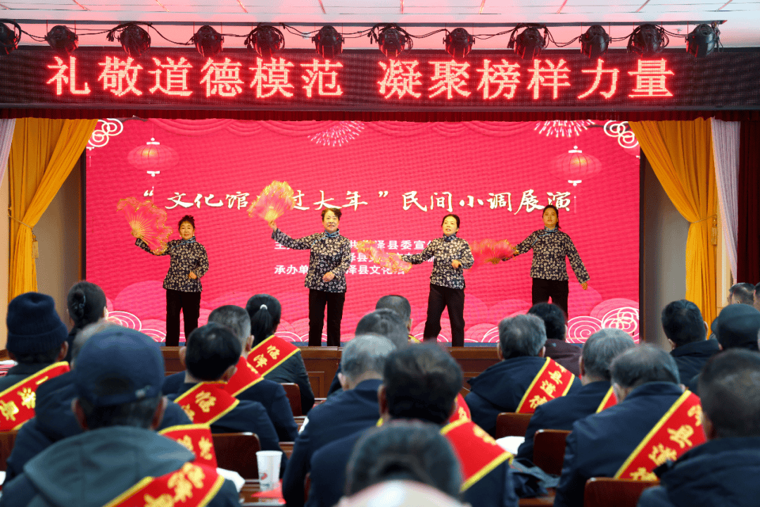 欢声笑语里,文艺展演为现场更添新春氛围。县文艺志愿者们带来移风易俗主题节目,韵味醇厚的河西宝卷念唱,将本土文化与文明新风相融,字字句句浸润人心;真挚动人的表演,传递着人间温情与向善初心;接地气、贴民心的民间小调,把崇德向善、向善向美的理念娓娓道来。一个个精彩的节目轮番上演,赢得现场阵阵掌声,这场沉浸式的文化盛宴,不仅丰富了道德模范们的精神文化生活,更以群众喜闻乐见的形式,让文明新风在欢声笑语中深入人心。